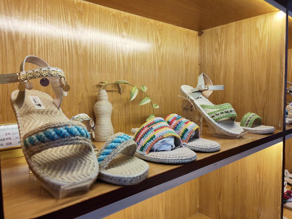 圖為雅路人公司設(shè)計(jì)生產(chǎn)的麻鞋產(chǎn)品。新華社記者王紫軒 攝