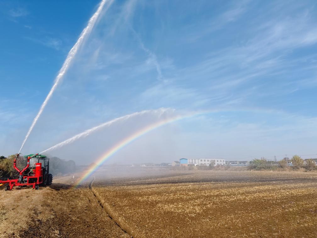 2025年12月9日,江蘇省江陰市對部分麥田進(jìn)行噴灌補(bǔ)水。(江陰市農(nóng)業(yè)農(nóng)村局供圖)