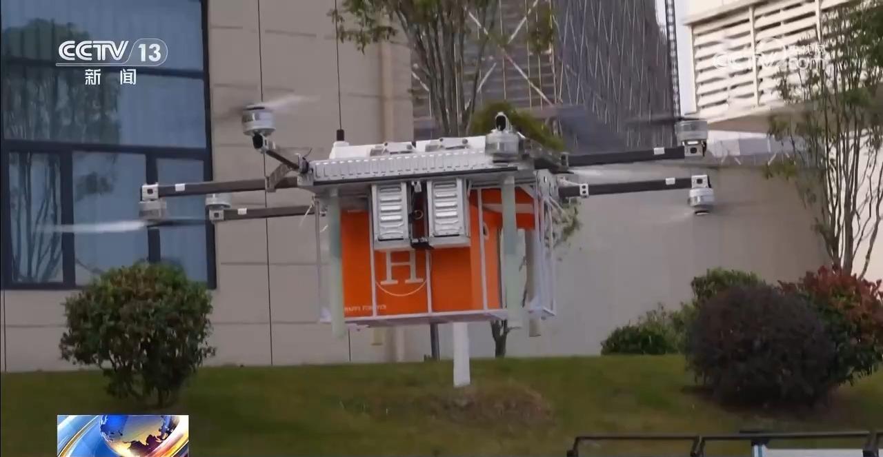 在江西上饒,隨著操作員的指令,一架停在指定泊位的無人機(jī)騰空而起,載著裝配好的水果、零食等,沿著航線,向城東飛去。十幾分鐘后,這份“無人機(jī)配送”外賣準(zhǔn)時(shí)送到了收件人手中。