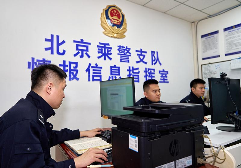 北京鐵路公安處乘警支隊綜合指揮室內(nèi),電話鈴聲、鍵盤敲擊聲此起彼伏。巨大的電子屏幕上,數(shù)十趟列車的運行狀態(tài)實時跳動。值班民警們的視線在幾塊屏幕間快速切換,這邊接起一個新來電,那邊還在記錄上一條警情的處置進展。