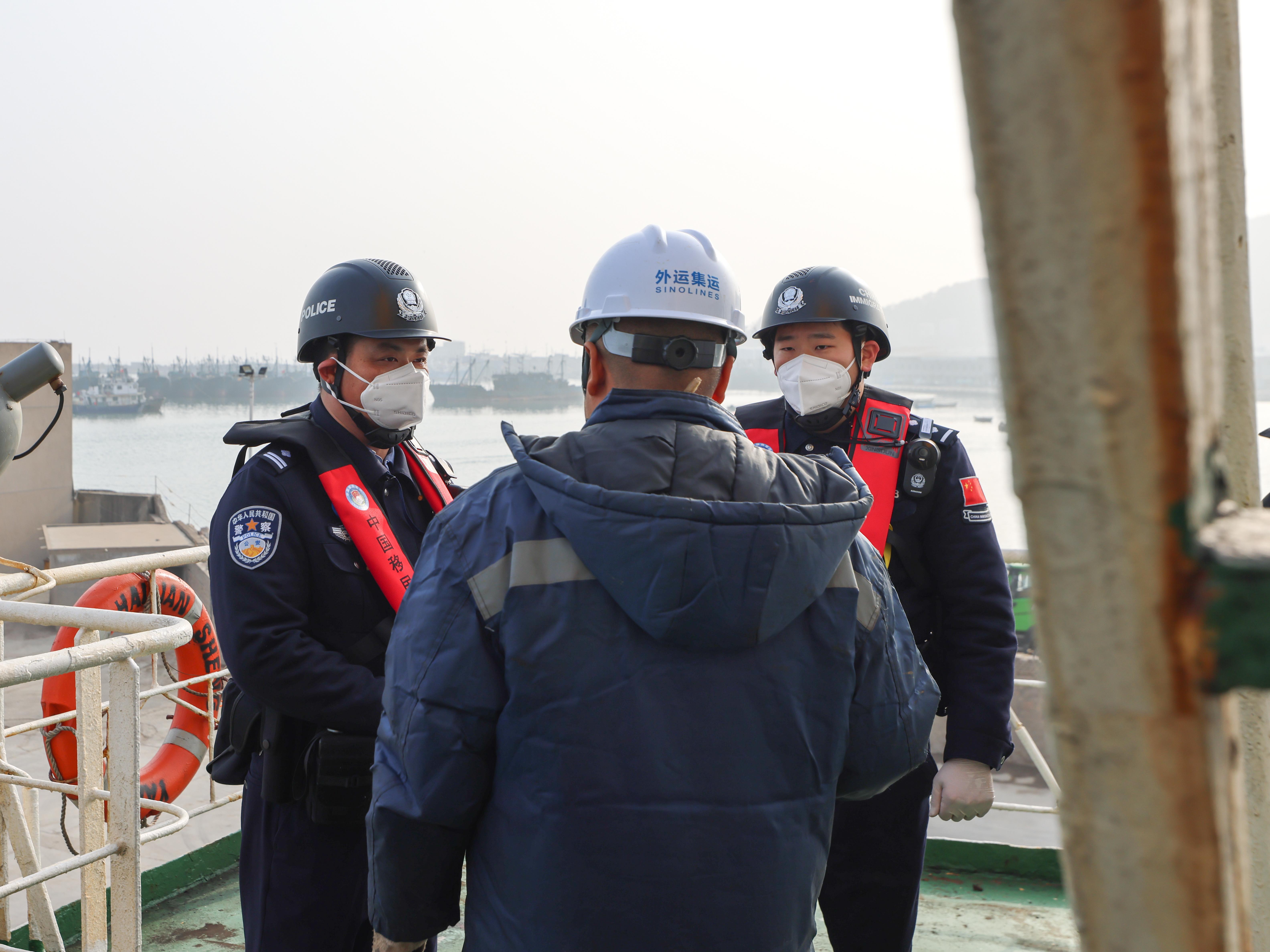 海風(fēng)卷著年味掠過石島港的碼頭,凜冽的寒風(fēng)中,藏藍(lán)色的警服身影始終挺立在海港邊。