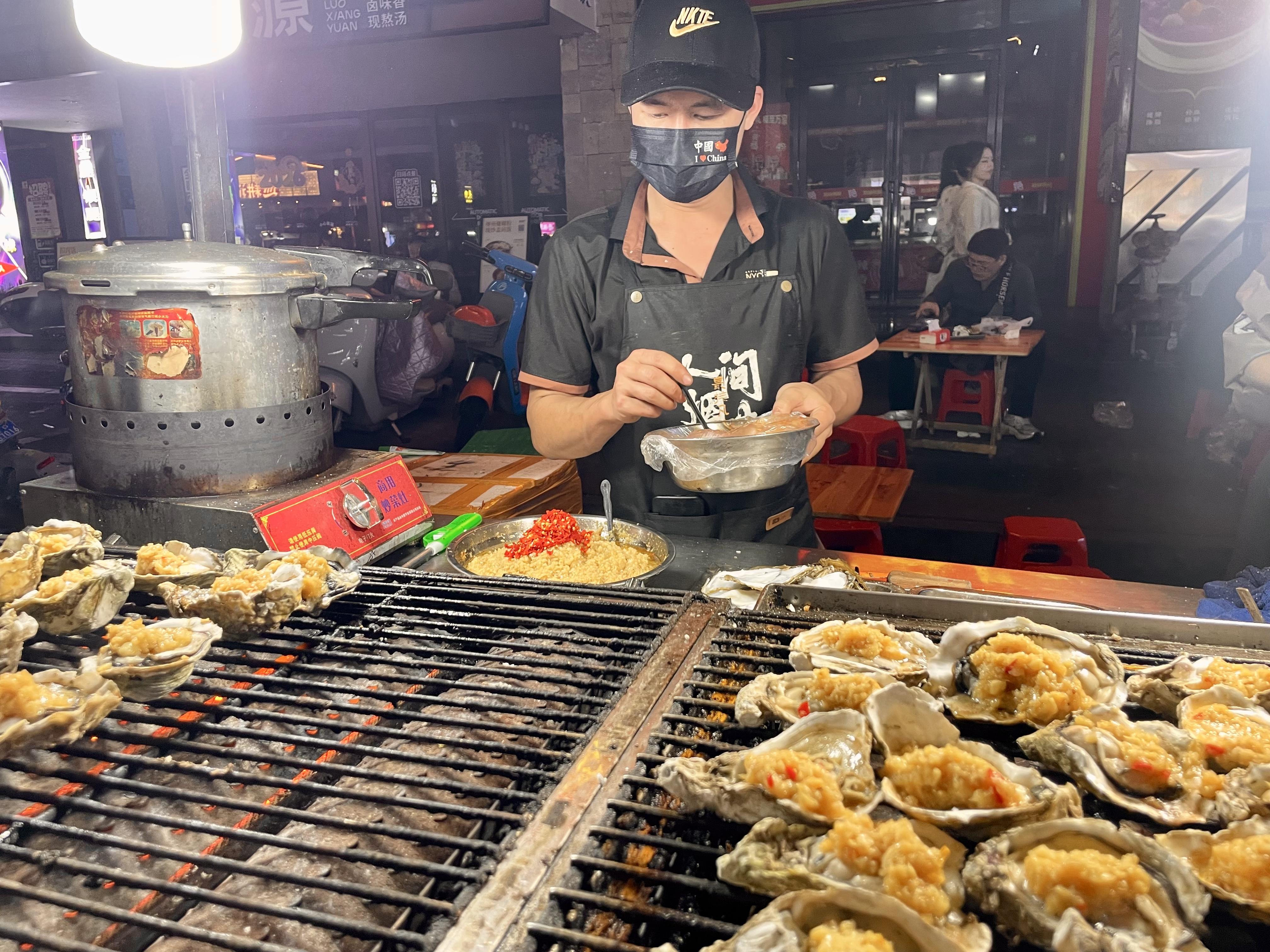 烤生蠔的攤主。 李遼 攝