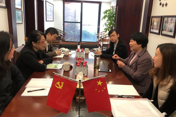 上海市民政局的同志到萍聚工作室調(diào)研。(代表供圖)