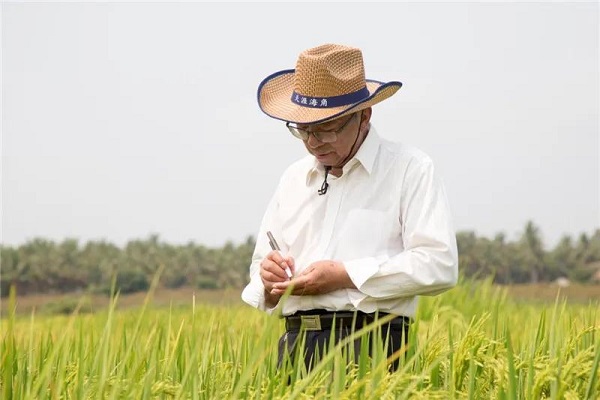 ▲ 謝華安院士在福建南繁育種基地工作。(資料照片,福建省農(nóng)科院供圖)