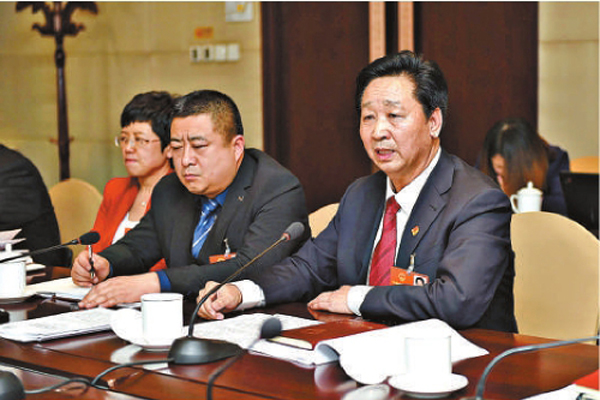 王士嶺(右一)在全國兩會上進行小組發(fā)言