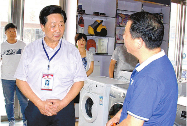 王士嶺(左二)走訪商戶,調(diào)研了解經(jīng)營情況