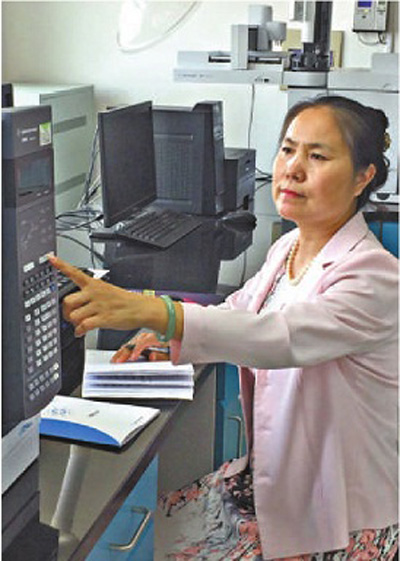 于安玲在實(shí)驗(yàn)室里作技術(shù)檢測(cè)