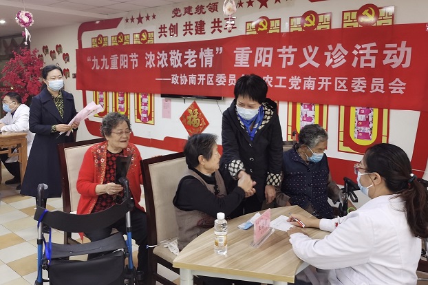近日,天津市南開區(qū)政協(xié)與農(nóng)工黨南開區(qū)委會(huì)聯(lián)合開展“慶重陽、送健康”義診活動(dòng)。醫(yī)療小組深入南開區(qū)養(yǎng)老中心,為在院老人進(jìn)行義務(wù)診療咨詢,宣傳健康理念,講解用藥常識,以實(shí)際行動(dòng)送上了節(jié)日祝福和溫暖關(guān)愛。 錢麗 李寧馨 攝