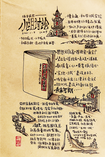 翻開姜春的手繪筆記本,全會預(yù)備會的審議內(nèi)容、開幕會的工作報告、小組會的討論議題……連環(huán)畫般呈現(xiàn),不但一目了然地展示出大會議程和任務(wù),而且生動詮釋了參會委員們?yōu)橥苿映鞘凶兊酶用篮谩傩者^得更加幸福而建真言、謀良策的努力模樣。