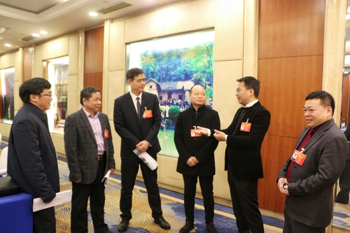 會(huì)上有“金點(diǎn)子”,會(huì)下有高“言”值。1月18日,湖南省政協(xié)全會(huì)科技界的小組討論會(huì)散場(chǎng)以后,省政協(xié)委員李完小、柳建新、王輝平、成艾國(guó)、戴躍鋒、李機(jī)旻(從左至右)圍成一圈,繼續(xù)就推進(jìn)湖南先進(jìn)制造業(yè)發(fā)展、加大企業(yè)科技研發(fā)投入、推進(jìn)農(nóng)村普法教育等問(wèn)題談感受、說(shuō)建議。 劉洋 王雙 攝