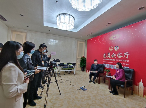 在廣西壯族自治區(qū)政協(xié)十二屆五次會(huì)議期間,人民政協(xié)報(bào)·人民政協(xié)網(wǎng)在會(huì)場(chǎng)外搭建“委員會(huì)客廳”,對(duì)委員進(jìn)行訪談。委員們紛紛通過網(wǎng)絡(luò)視頻方式發(fā)出政協(xié)好聲音。 肖亮升 攝
