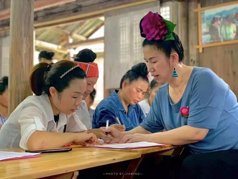 2013年,楊再美創(chuàng)立了臺江縣恒藝苗族文化藝術(shù)專業(yè)合作社,通過產(chǎn)品加工、“陽光計(jì)劃”、“蒲公英計(jì)劃”、“雨露計(jì)劃”、“錦繡計(jì)劃”、“非遺傳承”等培訓(xùn),傳承技藝,搭建橋梁,受益婦女達(dá)30000余人次,不僅精進(jìn)了繡娘的技藝,更多地給她們樹立了脫貧致富的信心。