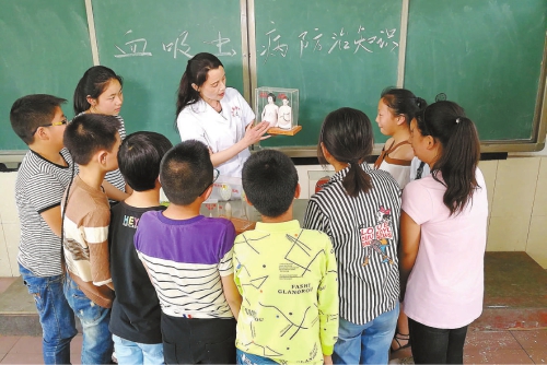 李霞為學(xué)生們講解血吸蟲病防治知識(shí)