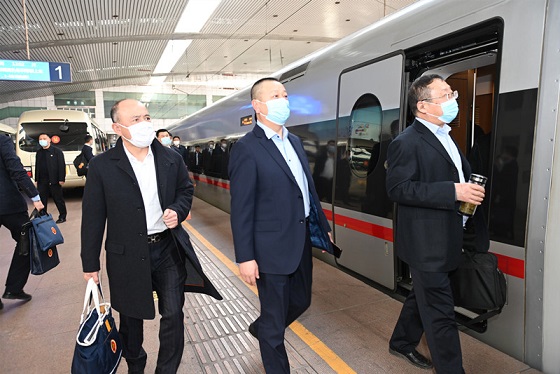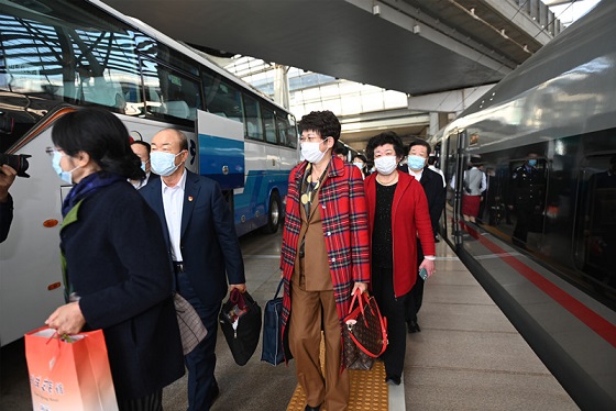 住魯全國人大代表在濟(jì)南珍珠泉賓館集合,準(zhǔn)備集體趕赴濟(jì)南火車站進(jìn)京。