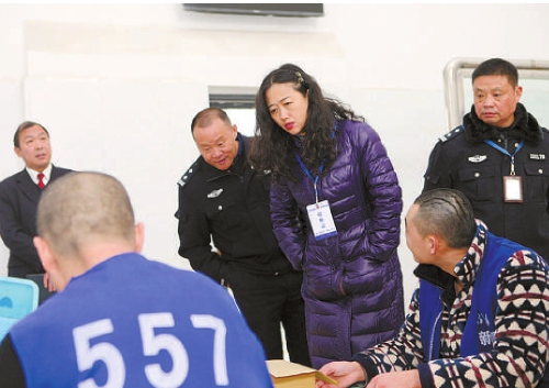 李甦雁(右三)應(yīng)邀到江蘇省新沂市看守所調(diào)研刑事執(zhí)行檢察工作。