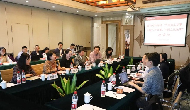虹橋聯(lián)系點聯(lián)合華東師范大學傳播學院、馬克思主義學院等部門,就“如何對外講好中國民主故事、中國人大故事、中國立法故事”召開座談會。(虹橋聯(lián)系點供圖)