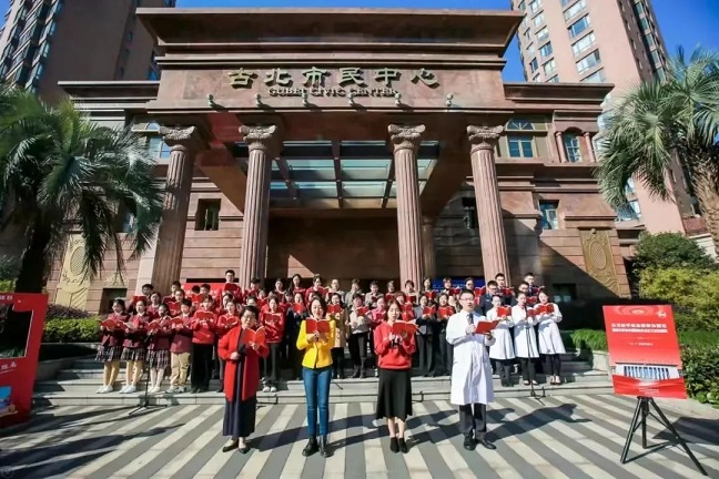 圖為2021年國家憲法日前夕,虹橋聯(lián)系點舉辦“群誦憲法序言”快閃活動。(虹橋聯(lián)系點供圖)