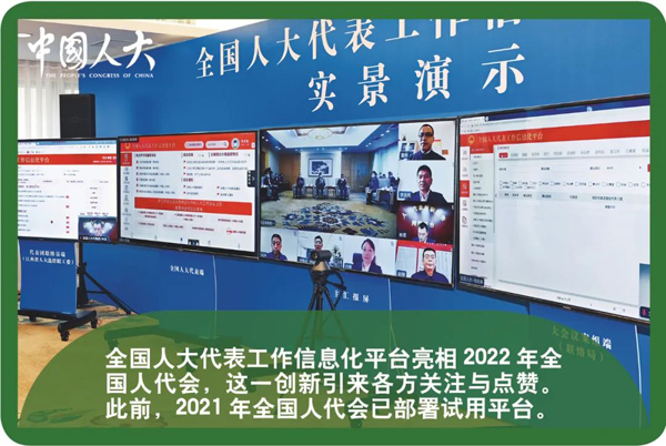 據(jù)了解,2021年3月,十三屆全國人大四次會議部署試用了全國人大代表工作信息化平臺,通過平臺開展了全部代表議案和部分代表建議的提交、分析、交辦等工作,會后繼續(xù)開展平臺二期功能開發(fā)。