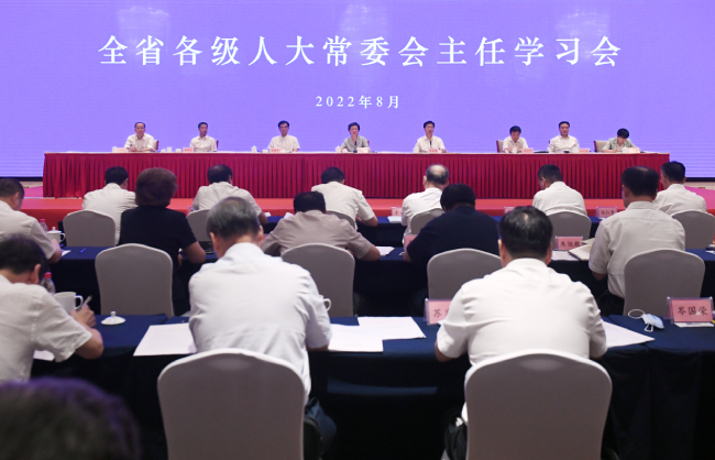 8月8日至10日,全省各級人大常委會主任學(xué)習(xí)會在杭州市舉行。省委書記、省人大常委會主任袁家軍親切看望與會人員,并作了重要講話。省政府王浩省長圍繞當(dāng)前我省經(jīng)濟(jì)社會發(fā)展形勢作了專題報告。省人大常委會黨組書記、副主任梁黎明在會議結(jié)束時作了講話,提出任務(wù)要求。