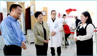 圖為全國人大代表藍景芬(左二)在浙江麗水景寧畬族自治縣大均鄉(xiāng)梅花圩村巡回診療點調(diào)研基本公共服務(wù)一體化工作。