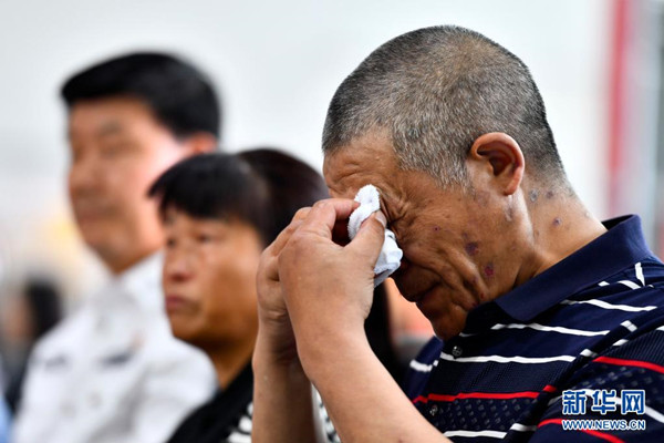 6月8日,在“認親,我們在行動”濟南主會場,吳某林在擦拭眼淚,他即將與被拐多年的兒子相認。新華社記者 郭緒雷 攝