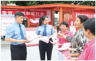 為加大力度打擊和處置非法集資,河南省洛陽(yáng)市近日開(kāi)展以“守住錢(qián)袋子·護(hù)好幸福家”為主題的宣傳活動(dòng)。汝陽(yáng)縣人民檢察院組織干警在社區(qū)體育廣場(chǎng)針對(duì)養(yǎng)老、涉農(nóng)、解債等領(lǐng)域開(kāi)展防范非法集資宣傳,從源頭上遏制非法集資發(fā)生。圖為汝陽(yáng)縣檢察院干警在社區(qū)體育廣場(chǎng)向群眾講解防范非法集資知識(shí)。