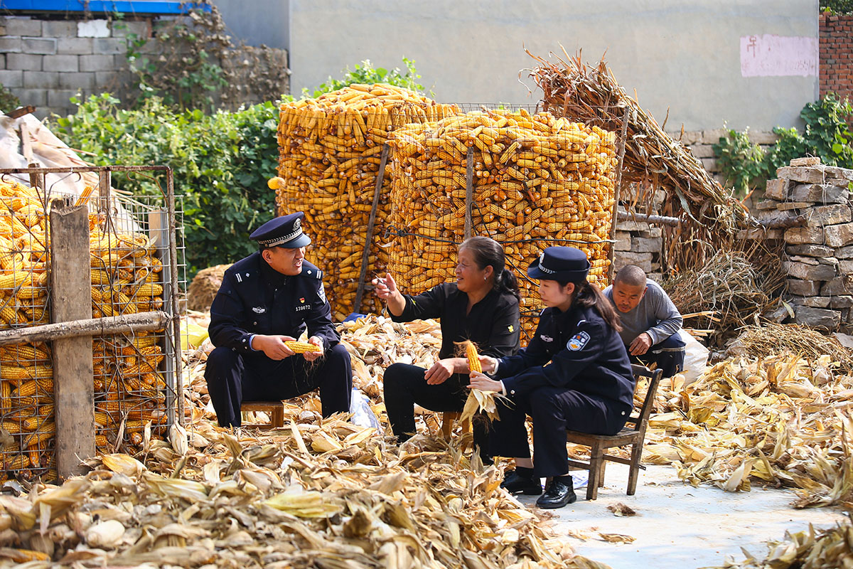 近日,山東省平陰縣公安局安城派出所民警深入轄區(qū)走訪村民,向群眾宣講新型電詐案例和報警止損常識,提高群眾識騙防騙能力。圖為民警向群眾普及反詐知識。本報通訊員 郝鑫城 攝