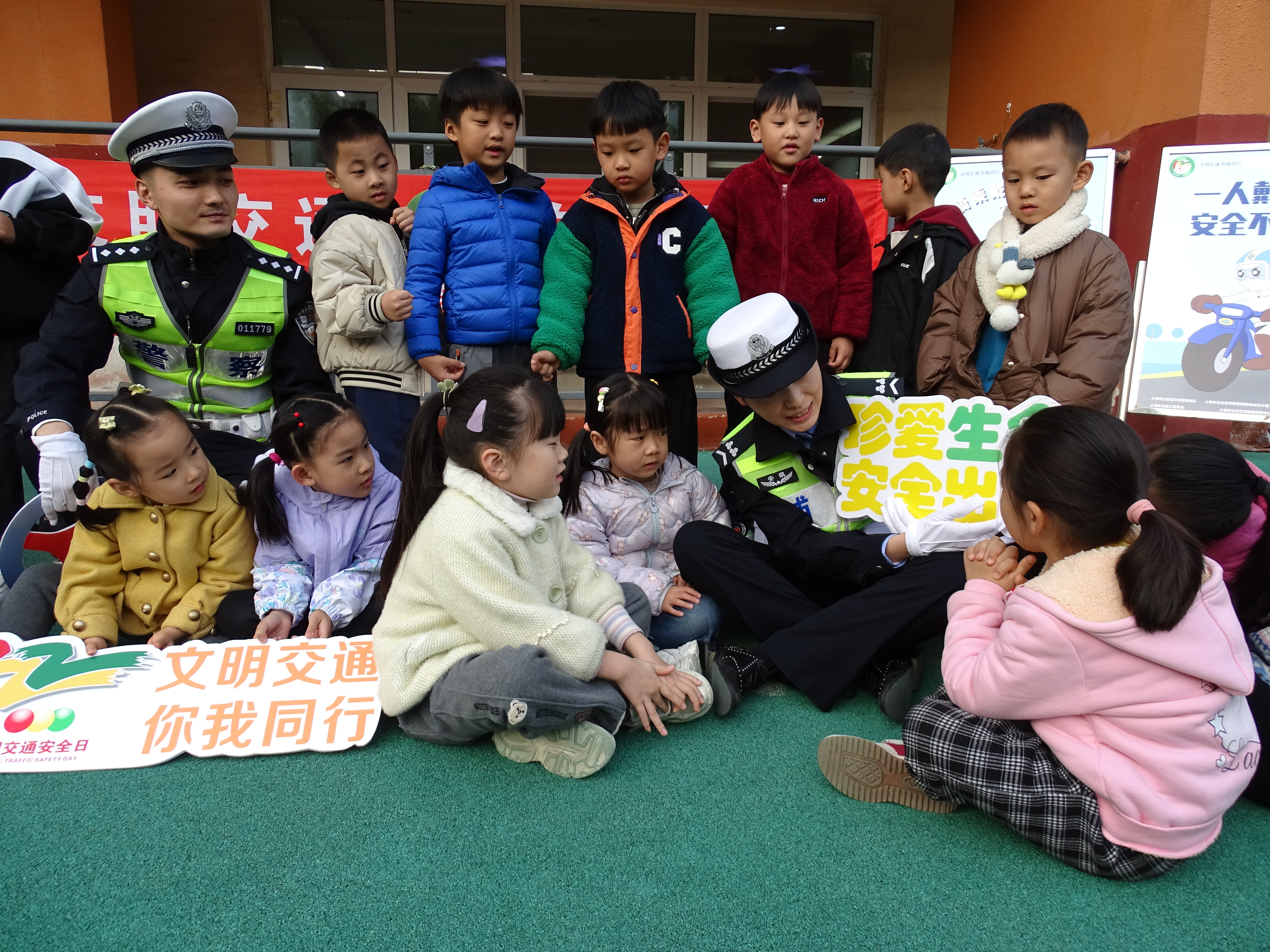 11月23日,安徽省蕪湖市公安局交警支隊鏡湖大隊組織開展“文明交通、你我同行”主題交通安全宣傳活動。交警走進(jìn)轄區(qū)環(huán)城南路幼兒園,通過互動問答等方式,提高孩子們道路交通安全意識。圖為交警向孩子們講解交通安全知識。