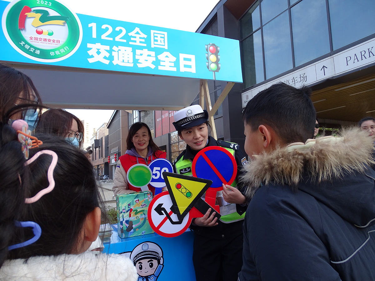 12月2日,安徽省蕪湖市公安局交警支隊(duì)鏡湖大隊(duì)組織民警開展“文明交通 你我同行”主題交通安全宣傳活動(dòng),進(jìn)一步提升群眾交通安全意識(shí)。圖為民警向群眾講解交通安全標(biāo)志。