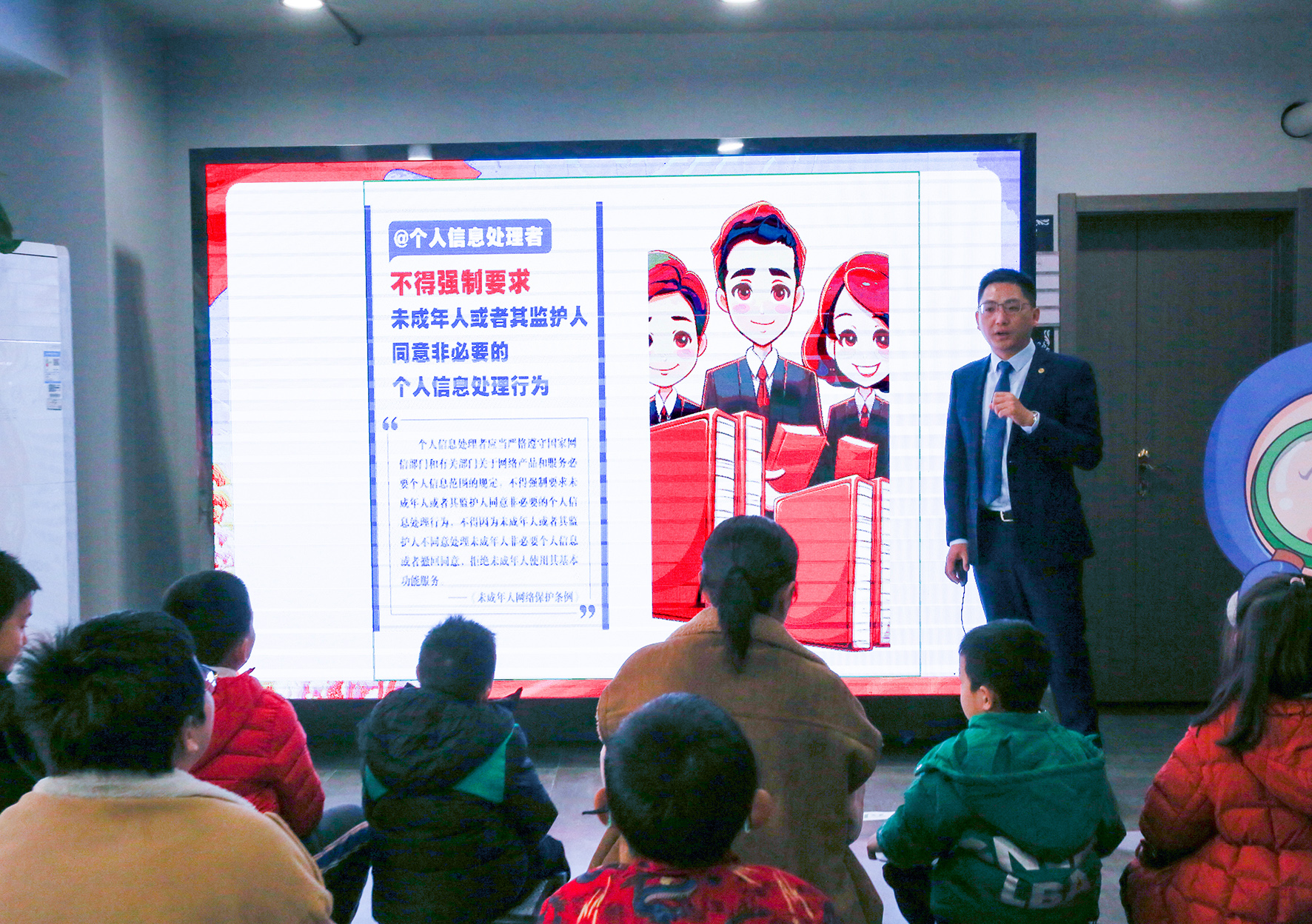11月26日,江蘇省如皋市委網(wǎng)信辦聯(lián)合如城街道組織人員走進(jìn)花園社區(qū)書屋,舉辦“e”起護(hù)苗未成年人網(wǎng)絡(luò)安全教育課堂活動。圖為律師為家長和學(xué)生解讀《未成年人網(wǎng)絡(luò)保護(hù)條例》。