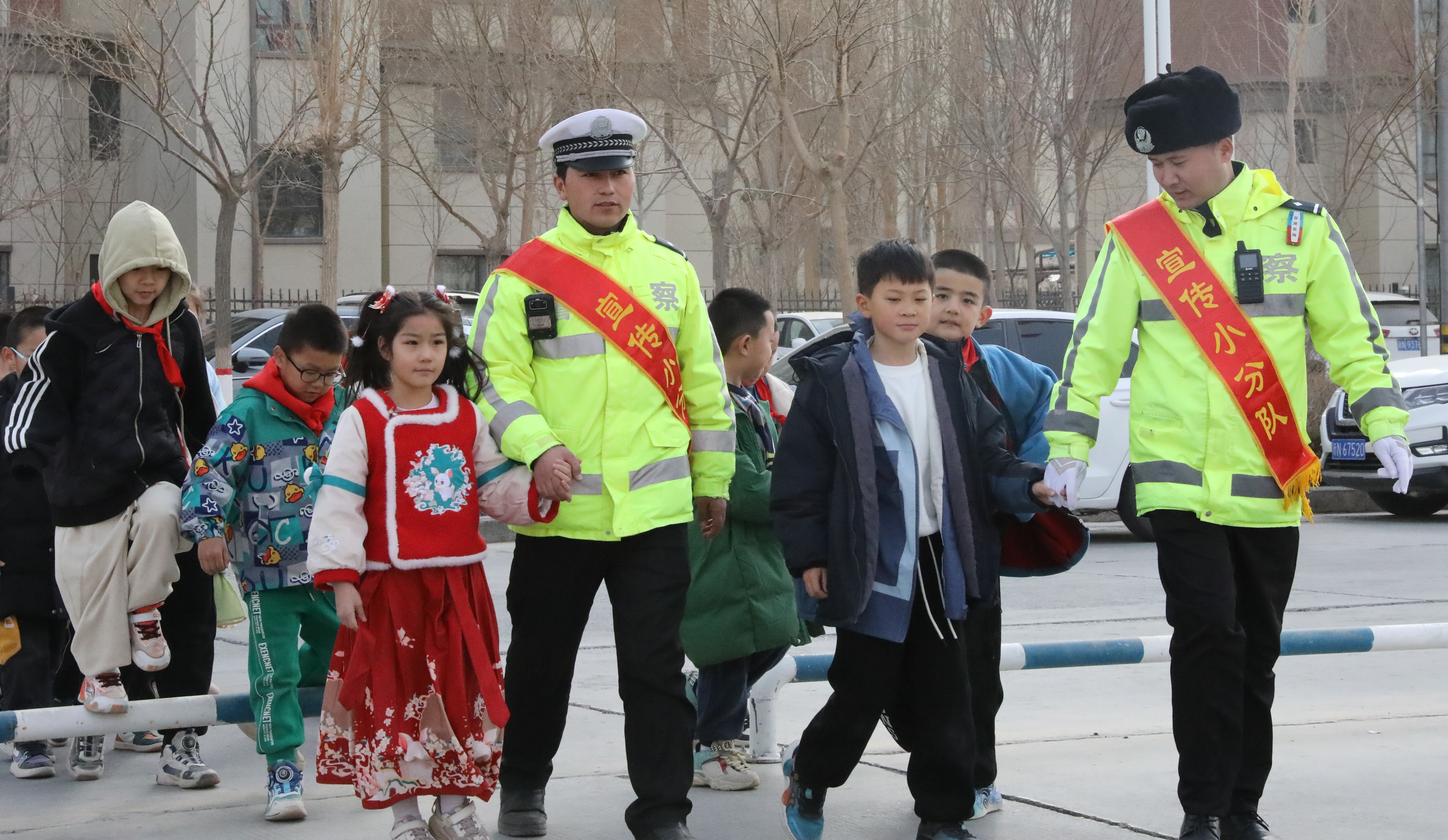 2月25日新學(xué)期的第一天,新疆維吾爾自治區(qū)阿克蘇地區(qū)溫宿縣公安局交通管理大隊(duì)民警走進(jìn)溫宿縣第八中學(xué),開展“開學(xué)第一課”交通安全主題宣傳活動(dòng)。圖為民警在學(xué)校操場(chǎng)上模擬現(xiàn)實(shí)場(chǎng)景,為學(xué)生們講解如何正確過馬路。