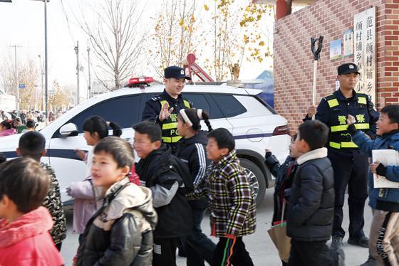 河南省范縣公安局顏村鋪派出所民警護(hù)送小學(xué)生離校