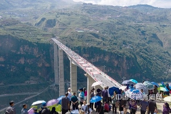 6月30日,由蜀道投資集團(tuán)所屬四川路橋建設(shè)集團(tuán)股份有限公司承建的涼山彝族自治州金陽(yáng)河三峽連心橋建成通車,為彝族群眾架起鄉(xiāng)村振興“快速通道”。大橋位于涼山州金陽(yáng)縣城北,全長(zhǎng)757.7米,最大跨徑200米,其中6號(hào)橋墩高達(dá)196米。
