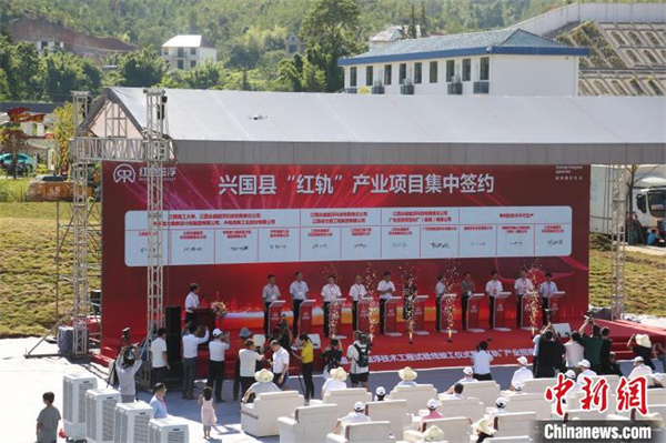 當(dāng)天的“紅軌”產(chǎn)業(yè)招商推介會(huì)上,現(xiàn)場(chǎng)集中簽約《興國紅軌磁浮二期設(shè)計(jì)、建設(shè)、運(yùn)營一體化項(xiàng)目》等10個(gè)項(xiàng)目,總投資114.3億元。(完)