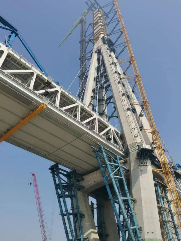 與張靖皋長江大橋的懸索式設(shè)計(jì)不同,常泰長江大橋是目前在建的世界最大跨度鋼桁梁斜拉橋。據(jù)中交二航局常泰項(xiàng)目常務(wù)副經(jīng)理王輝介紹,由于長江中下游河段航運(yùn)繁忙,要保證主航道橋主跨達(dá)到1208米,以充分發(fā)揮“黃金水道”的“黃金效益”。而為了牢牢“拉住”大跨度的橋面,高達(dá)350米“世界最高橋塔”也應(yīng)運(yùn)而生。
