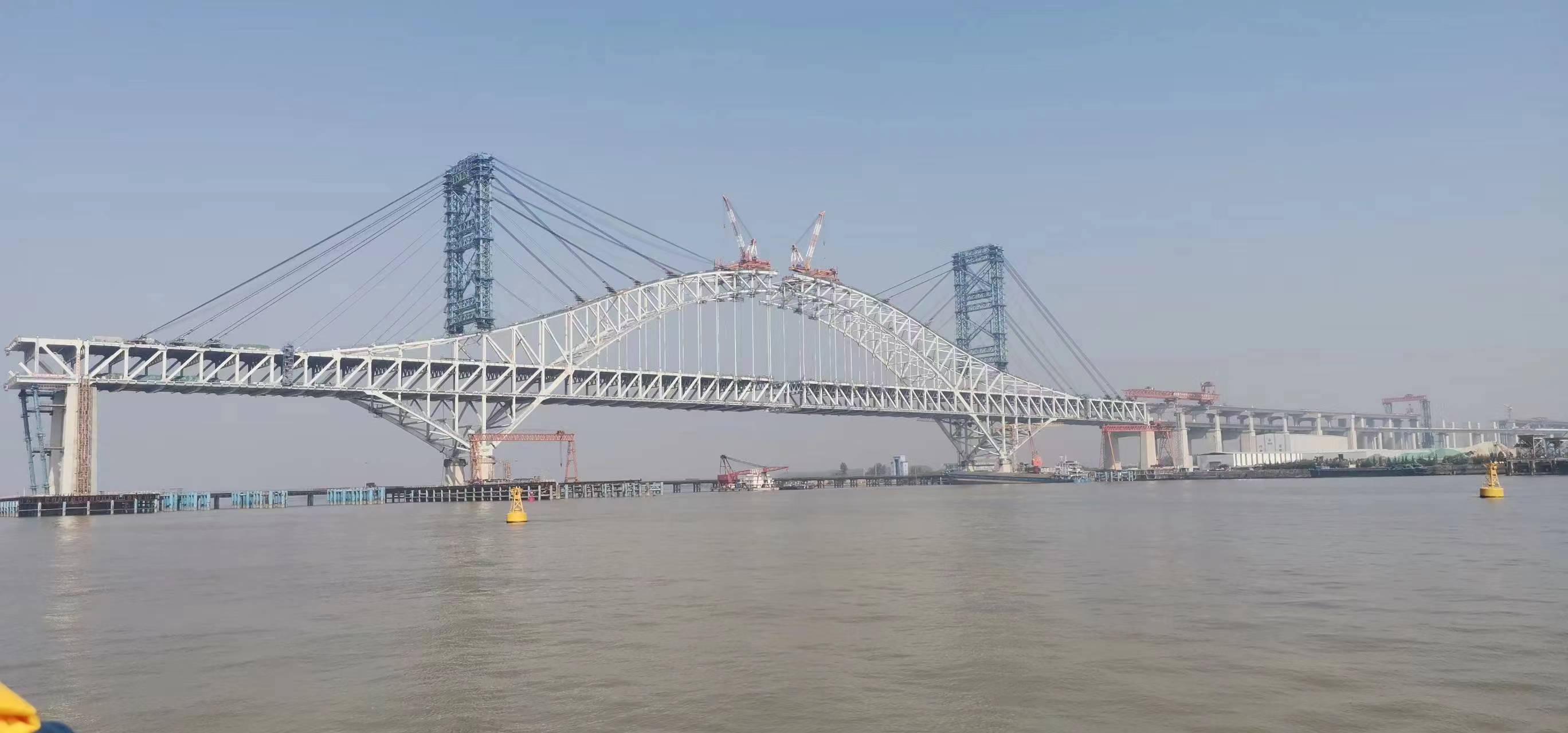 站在泰興市虹橋鎮(zhèn)的長江岸邊,放眼望去,江心高聳的鉆石型主塔直指藍(lán)天,兩側(cè)蛟龍般的鋼桁拱橋橫臥江面,這就是由江蘇省交通工程建設(shè)局建設(shè)、中交集團(tuán)所屬中交二航局參建的常泰長江大橋。主跨長達(dá)1208米的主航道橋和兩側(cè)天星洲、錄安洲兩座專用航道橋連接貫通后,將成為長江上首座集高速公路、城際鐵路、一級公路“三位一體”的過江通道。大橋分為上下兩層,上層為雙向六車道高速公路,下層為兩線城際鐵路與普通公路并行。建成通車后,常州、泰州兩城間的交通將由原先的幾小時(shí)縮減至30分鐘,長江南北兩岸的人流和物流的便利性將大大加強(qiáng)。