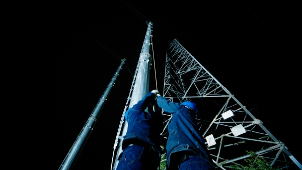 10月21日凌晨4時10分,在新建的河南省平頂山至漯河、周口高速鐵路電力線路遷改工程220千伏Ⅱ英普線停電施工現(xiàn)場,漯河市供電公司作業(yè)人員正在進(jìn)行跨越京廣高鐵導(dǎo)線展放工作。