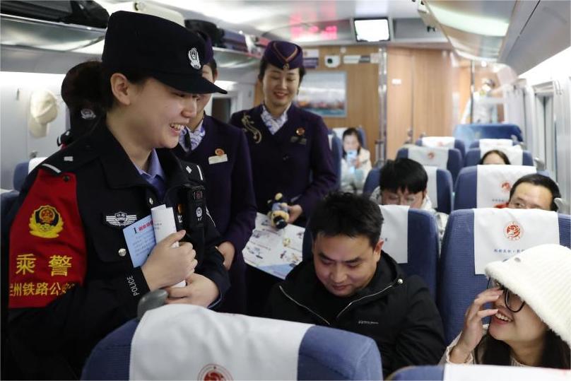 在值乘工作中,“玫瑰女子乘警組”的女警們結(jié)合高鐵列車的特點與實際情況,果斷處置各類突發(fā)警情,耐心傾聽旅客求助,第一時間將糾紛矛盾化解于無形,同時開展形式新穎、內(nèi)容豐富的安全知識宣傳,既是旅途平安的守護者,更是旅客的貼心人。
