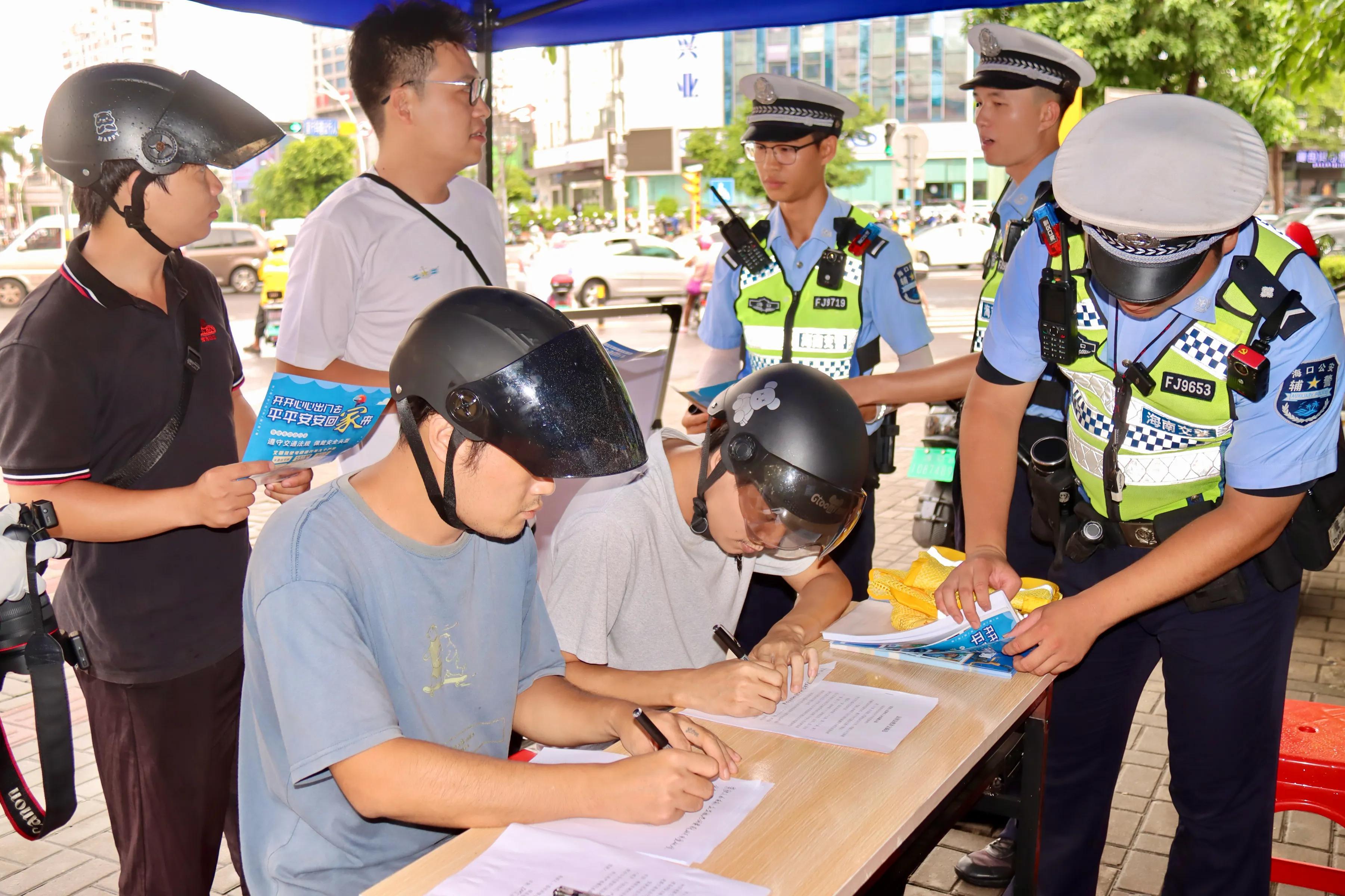 近日,海南海口公安交警在重點路段、商圈和學校周邊針對摩托車、電動自行車交通違法行為加大執(zhí)法力度,對闖紅燈、逆行、未佩戴安全頭盔、無號牌上路行駛等高頻違法行為開展精準整治。在嚴格執(zhí)法的同時,設立“馬路學堂”推行“教育免罰”,違法當事人可任選觀看警示教育視頻、抄寫交通法規(guī)條文、體驗輔助執(zhí)法中的一種方式完成學習,簽署文明騎行承諾書后即可免罰,將執(zhí)法現(xiàn)場變?yōu)槠辗ㄕn堂,讓當事人深刻認識交通安全重要性。