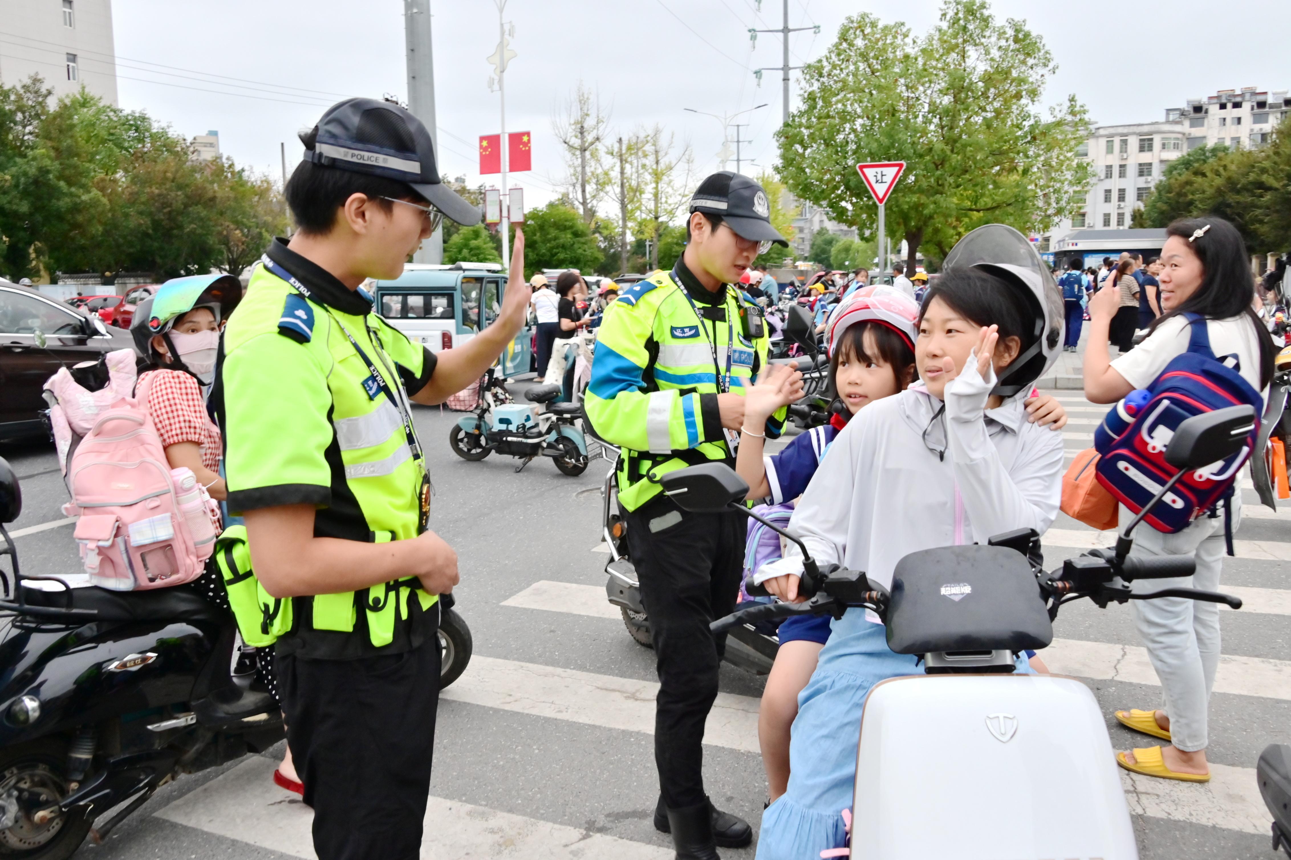 連日來,江西省武寧縣公安局交管大隊組織民輔警走進轄區(qū)校園,開展文明交通宣傳勸導(dǎo)活動,為搭乘摩托車、電動自行車后座上下學(xué)的學(xué)生送上兒童專用頭盔,用暖心關(guān)愛護航學(xué)生安全出行。