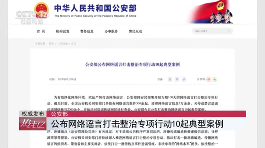 公安部 公布網(wǎng)絡(luò)謠言打擊整治專項(xiàng)行動(dòng)10起典型案例