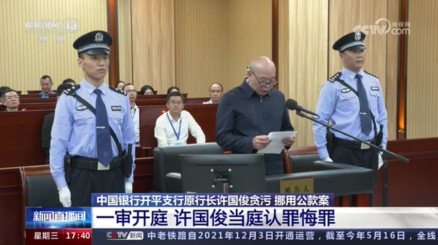 中國銀行開平支行原行長許國俊貪污 挪用公款案 一審開庭 許國俊當(dāng)庭認(rèn)罪悔罪