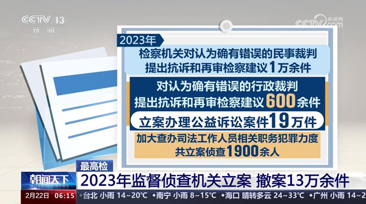 最高檢 2023年監(jiān)督偵查機關立案 撤案13萬余件