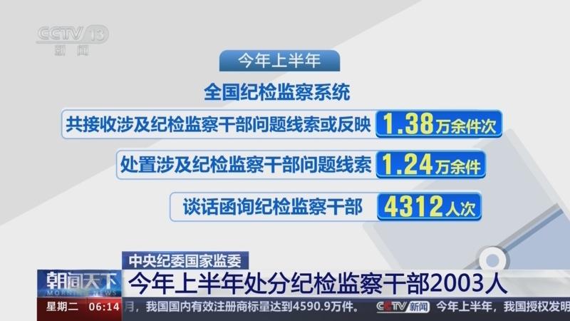 中央紀委國家監(jiān)委 今年上半年處分紀檢監(jiān)察干部2003人