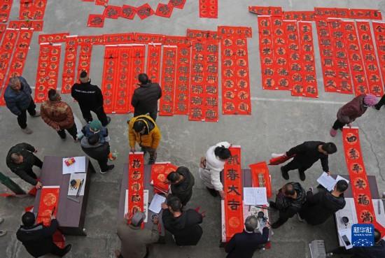春節(jié)臨近,多地組織書法志愿者走進(jìn)社區(qū)、工地等場所,為人們書寫春聯(lián)和福字,迎接春節(jié)的到來。