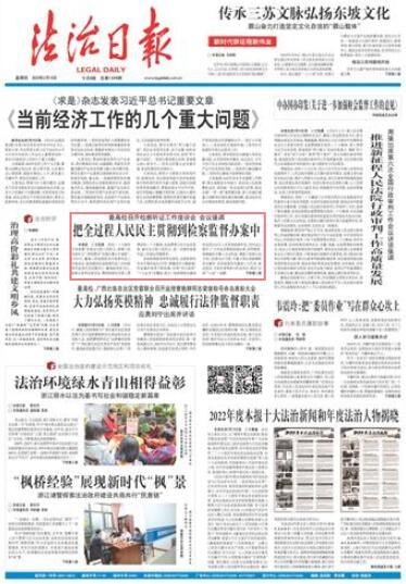 本報(bào)訊 記者張昊 黨的二十大報(bào)告專章部署“發(fā)展全過程人民民主,保障人民當(dāng)家作主”,特別要求“完善辦事公開制度”。2月15日,最高人民檢察院召開檢察聽證工作座談會(huì),就加強(qiáng)和改進(jìn)檢察聽證工作向檢察聽證員代表問需求計(jì)。最高檢黨組書記、檢察長(zhǎng)張軍出席會(huì)議,圍繞檢察機(jī)關(guān)深入貫徹黨的二十大精神,全面貫徹習(xí)近平法治思想,踐行全過程人民民主,進(jìn)一步做好檢察聽證工作提出明確要求。