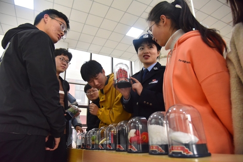 3月16日,安徽省馬鞍山市當涂縣公安局民警來到馬鞍山學院開展禁毒知識、反電信詐騙宣傳進校園活動。民警以講解案例、展示仿真毒品模具等形式向同學們講述常見的詐騙種類和吸食毒品的危害。