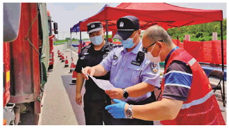 圖⑥ 民警在隴海路西路高速公路站口檢查司乘人員的核酸檢測證明。