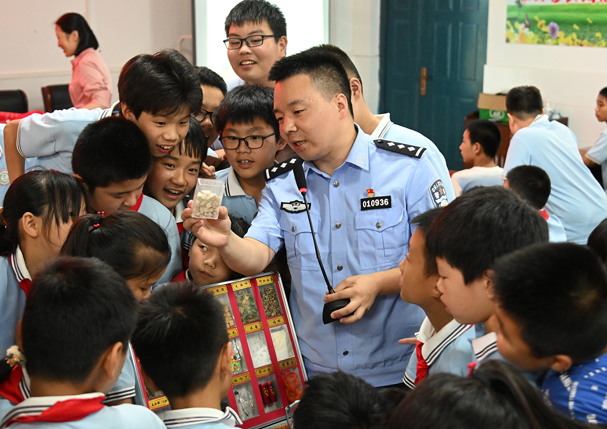 6月21日,安徽省蕪湖市公安局鏡湖分局荊方派出所聯(lián)合轄區(qū)街道組織開(kāi)展以“禁毒記心間,人生不‘毒’行”為主題的禁毒宣傳進(jìn)校園活動(dòng)。民警和街道工作人員來(lái)到方村小學(xué),采取講座、識(shí)別毒品種類(lèi)、有獎(jiǎng)問(wèn)答、禁毒簽名等方式,讓學(xué)生們從小樹(shù)立禁毒意識(shí)。