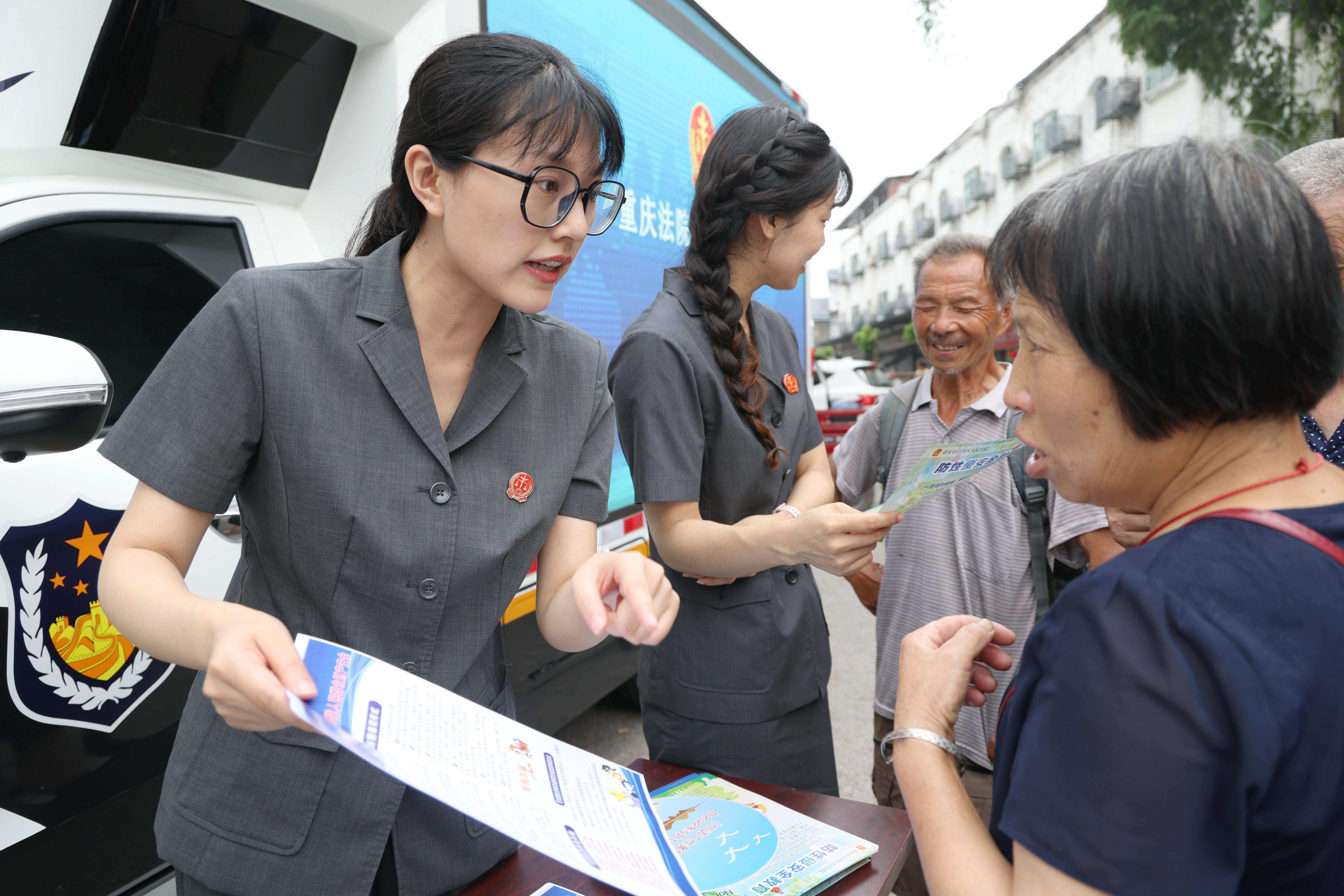 近日,重慶市合川區(qū)人民法院干警將“車載便民法庭”開進轄區(qū)沙魚鎮(zhèn),通過宣講防詐反詐技巧知識、溺水事件警示等,提升家長、學(xué)生暑期安全防范意識。